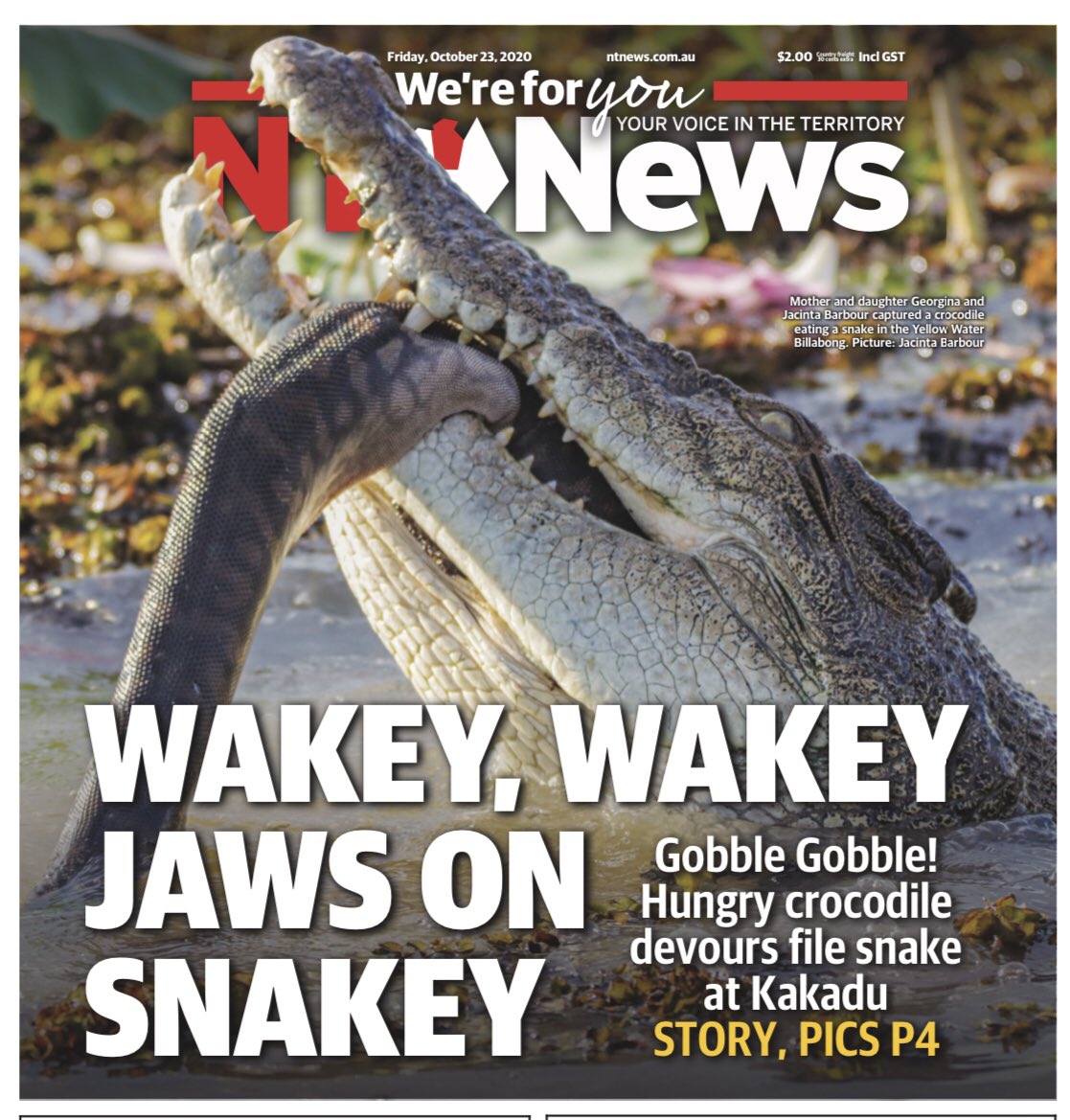 Nt News Crocodile / The Nt News On Twitter Tomorrow S Front Page Splash / Park rangers in the northern territory are cautioning tourists about swimming in local waterways after a 3.3 metre saltwater crocodile was caught this week.. The nt government has a capture and management program for crocodiles that pose a risk to safety. Jun 09, 2021 · in the northern territory the saltwater crocodile population has been protected for over 40 years. Apr 30, 2021 · a crocodile was involved in an incident, national parks confirmed. Share this on twitter share this by. Northern territory 6:31pm aug 27, 2020.